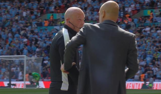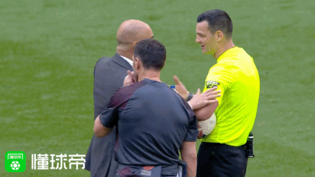 比赛虽然结束了,但瓜迪奥拉依旧与主裁判进行沟通