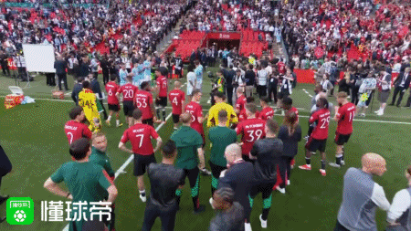 曼城球员夹道向曼联球员表示祝贺,曼联即将捧杯