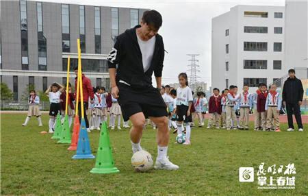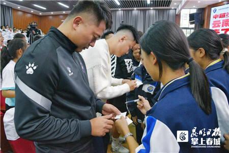 明星球员刘宇豪、罗竞代表球队队员分享了个人经历,与现场师生问答互动签名,并在学校运动场与小学部20多名小球员的足球进行互动活动。
