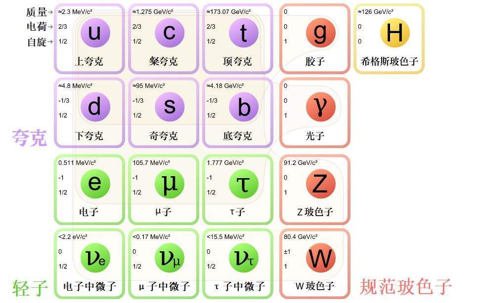 到目前为止,科学家们已经证实的基本粒子包括: