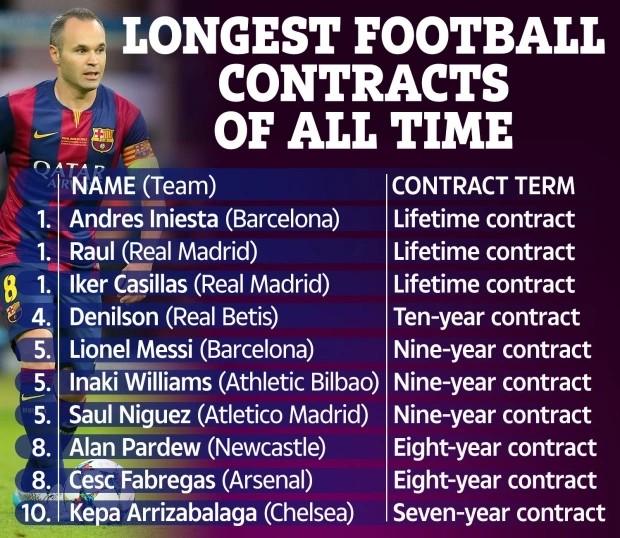 西班牙媒体透露,巴萨有望向梅西开出一份长达10年的合同。在世界足坛,不乏签订终身合同的球员,然而,不论是劳尔、卡西利亚斯还是伊涅斯塔,他们都还是离开了各自的俱乐部。