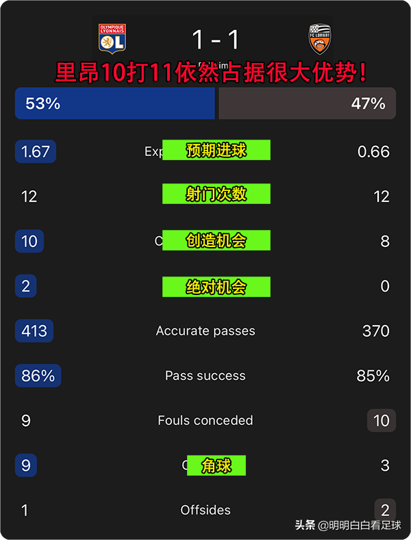 如果不是洛里昂打出了个任意球世界波,里昂甚至10打11都能拿下?您说这吓不吓人。