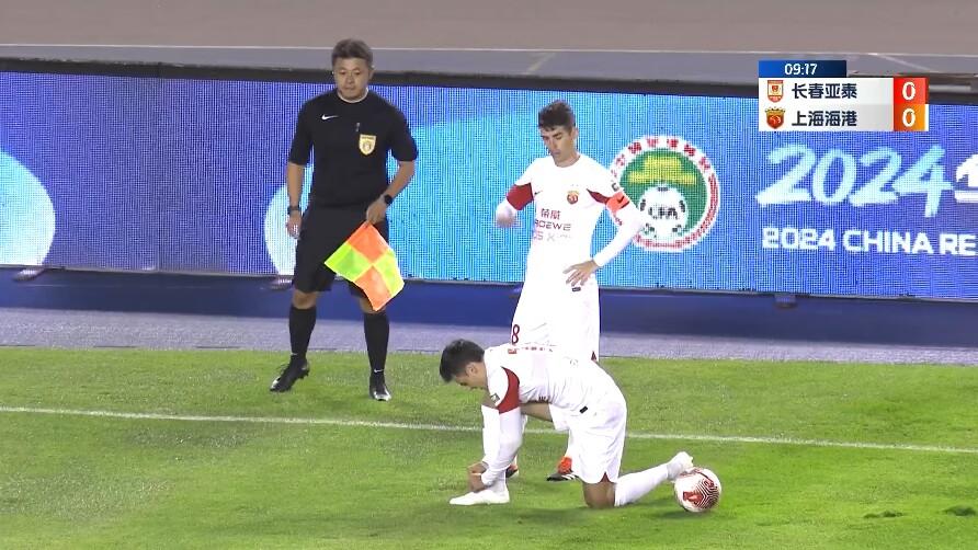 随后比赛开球继续进行,但本场导播似乎开小差了,直到9分20秒左右才将比分改为亚泰0-1海港,此时距离进球(约7分30秒)已经过去接近2分钟时间。