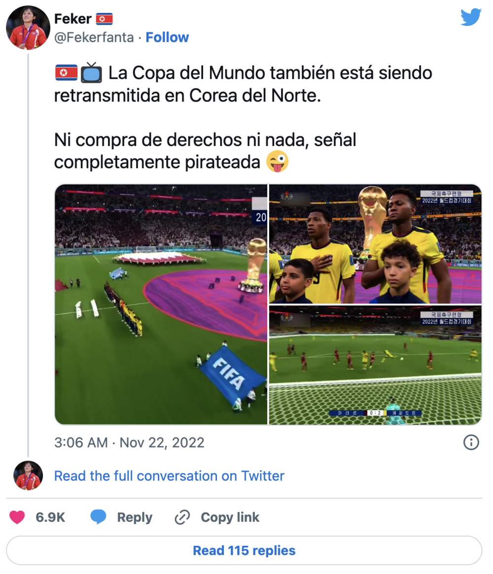 在11月22日晚间,卡塔尔世界杯开幕后的第二天,朝鲜国民才看到了东道主卡塔尔和厄瓜多尔的比赛。