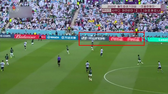 比如在英格兰对阵伊朗的比赛里,朝鲜专业团队至少有一次忘了给麦当劳和可口可乐打码。