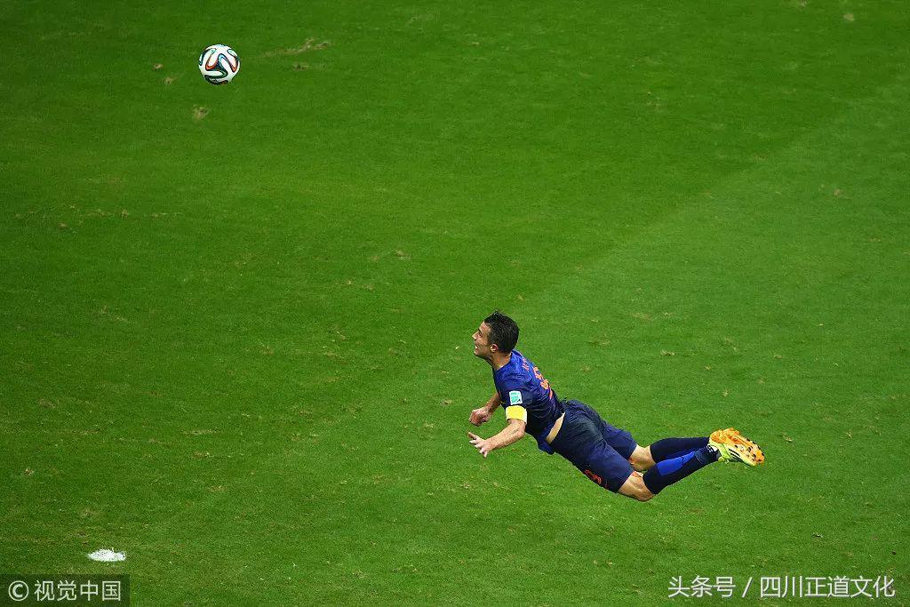 2014年6月13日,巴西萨尔瓦多,2014巴西世界杯小组赛B组,荷兰5:1西班牙。荷兰前锋范佩西飞身鱼跃打进一粒头球扳平比分。这场比赛,荷兰对报了当年世界杯决赛失利之仇。上届冠军西班牙队小组没有出线,而今年,荷兰队没有进入俄罗斯世界杯决赛阶段。(Photo by Jeff Gross/Getty Images)