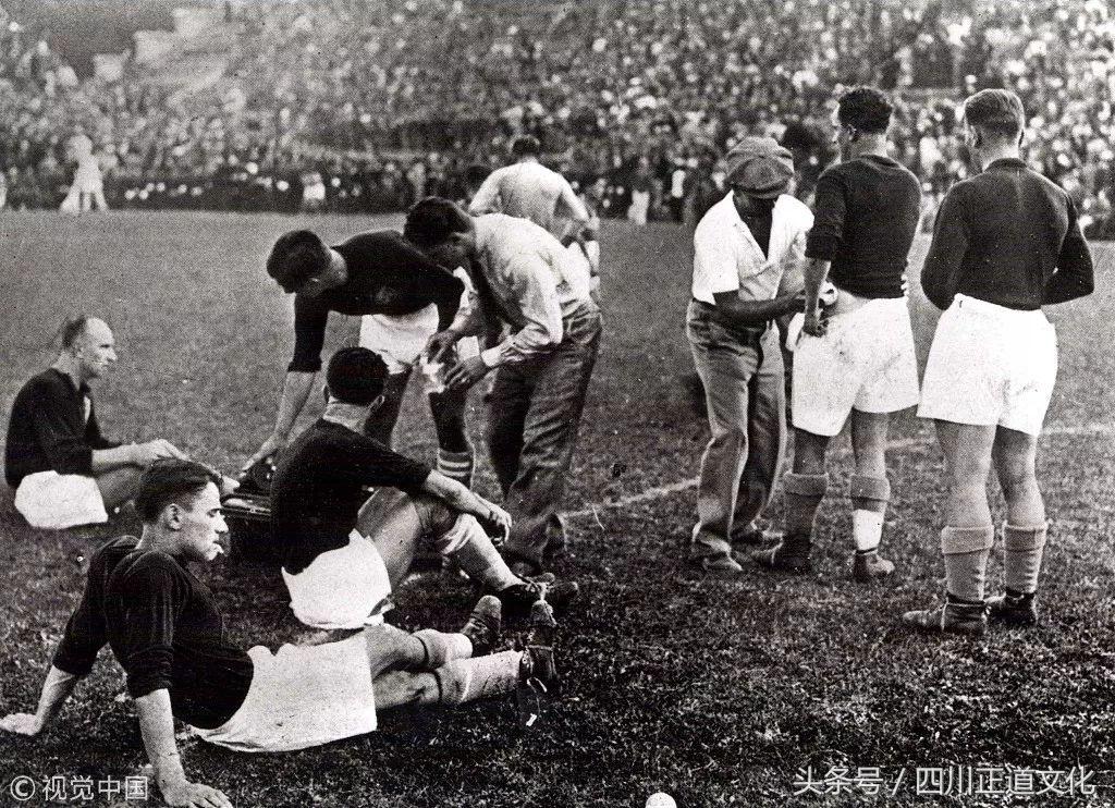 1934年6月10日,意大利罗马,世界杯决赛意大利对阵捷克斯洛伐克。图为捷克斯洛伐克球员在等待加时赛。(Photo by Bob Thomas/Popperfoto/Getty Images)