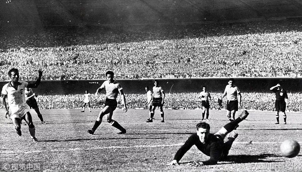 1950年7月16日,巴西里约热内卢,世界杯决赛,乌拉圭爆冷2:1战胜巴西。马拉卡纳体育场创纪录的涌入20万观众,他们在现场亲眼见证了巴西主场失利这一大冷门的诞生。这一事件也被称为“马拉卡纳惨案”。在这次挫败之后,迷信的巴西人决定把他们的白衬衫换成蓝色的,球衣换成了换成现在熟悉的黄色和绿色。 (Photo by Popperfoto/Getty Images)