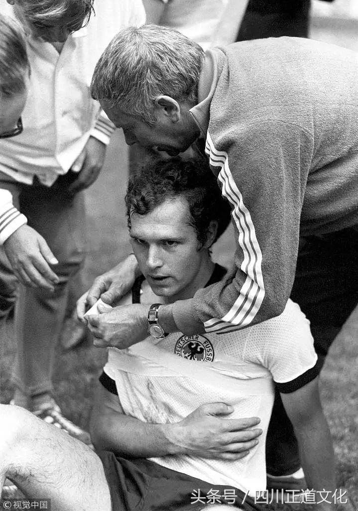 1970年6月17日,德国队的球员贝肯鲍尔半决赛对意大利的比赛中肩膀脱臼,仍吊上绷带坚持战斗。本场比赛德国队败给了意大利队。贝肯鲍尔球员时代开创了中场“自由人”战术踢法。他后来成为国际足联副主席,现德国任拜仁慕尼黑俱乐部终身名誉主席。被世人尊称为“足球皇帝”。