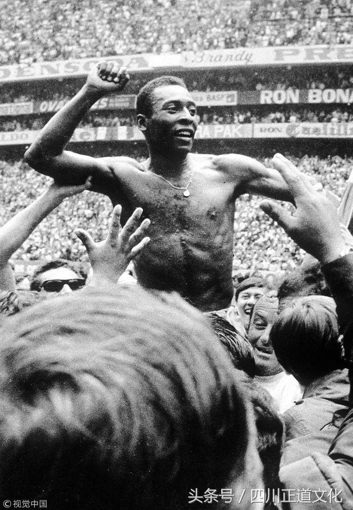 1970年6月21日,墨西哥城,墨西哥世界杯决赛巴西队4:1意大利。贝利在比赛结束时欣喜若狂,他被欢乐的球迷所包围。(Photo by Popperfoto/Getty Images)