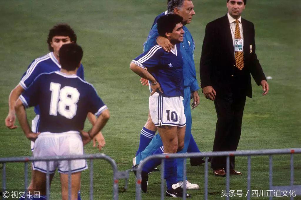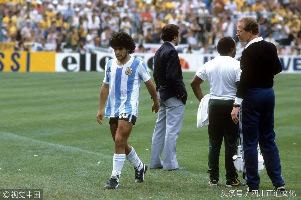 1982年7月2日,西班牙,22岁的阿根廷球员马拉多纳第一次参加世界杯,在与巴西队的比赛中,第75分钟阿根廷队以0比3落后,年轻气盛的马拉多纳不堪忍受对手的侵犯,第85分钟高抬大腿踏向巴西后卫巴蒂斯塔小腹,吃到红牌下场。