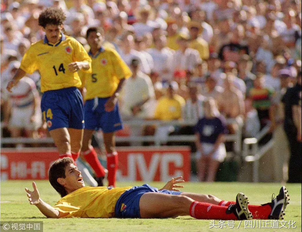 1994年6月22日,美国洛杉矶,世界杯小组赛中,美国2:1哥伦比亚,哥伦比亚球员埃斯科巴在比赛中打进乌龙球。回国后,他因此身中12枪被杀身亡。(REUTERS/Jeff Vinnick)