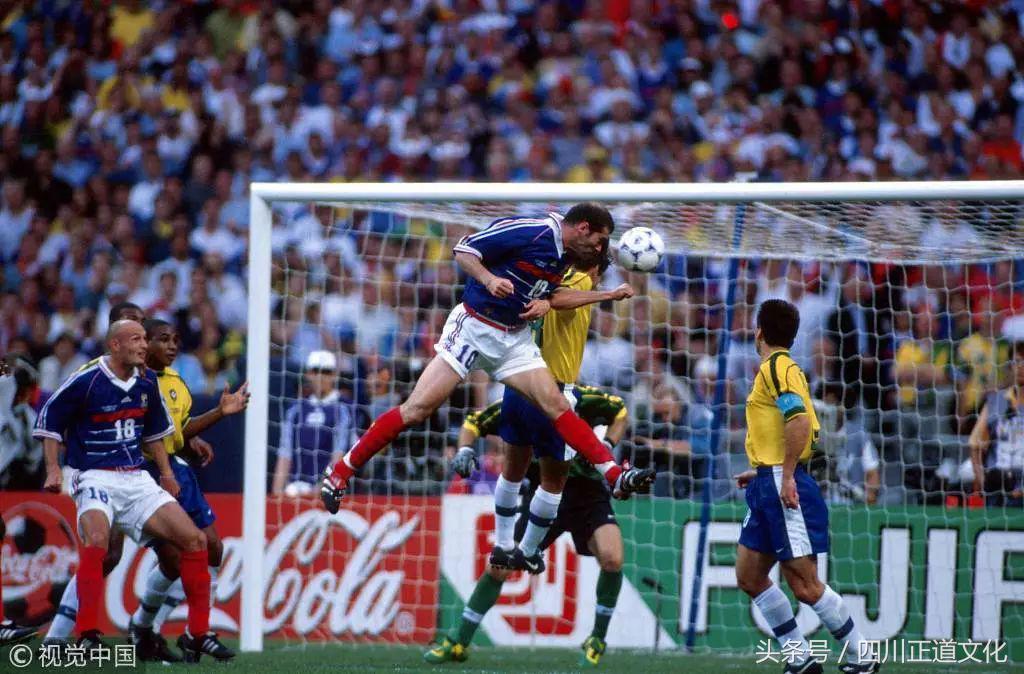 1998年,法国法兰西大球场,世界杯决赛,法国球员齐达内甩头攻门。最终,法国队以3:0战胜了巴西队。在本土获得冠军。本届世界杯齐达内大放异彩,而被人看好的巴西球员罗纳尔多则在决赛中发挥失常。当时或许没有人想到,这是齐达内时代的开始。