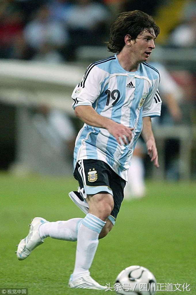 2006年6月21日,世界杯小组赛C组第3场比赛,阿根廷0-0战平荷兰,年轻的阿根廷球员梅西在赛场上。(ChinaFotoPress)