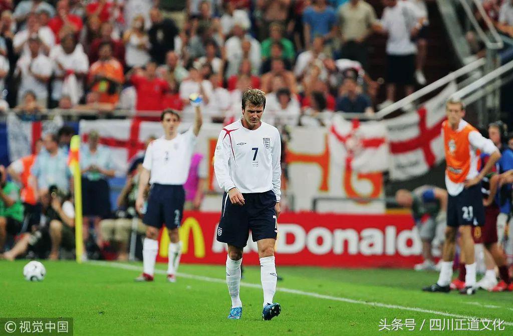 2006年7月1日,在德国盖尔森基兴体育场,英格兰队与葡萄牙队的比赛中,英格兰队的大卫·贝克汉姆因伤被替换下场后,失声痛哭。这场比赛在点球大战中,英格兰队败给了葡萄牙。这也是贝克汉姆最后一次参加世界杯决赛阶段的比赛。2010年3月,小贝左脚跟腱断裂,错过了当年的南非世界杯。 从此世界杯,再无贝影。(Photo by Alex Livesey/Getty Images)