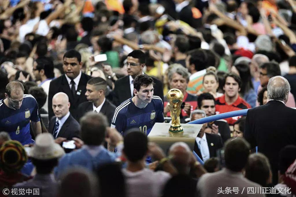2014巴西世界杯决赛颁奖仪式,被认为最接近马拉多纳的阿根廷球员梅西,与大力神杯咫尺天涯。(成都商报/视觉中国)