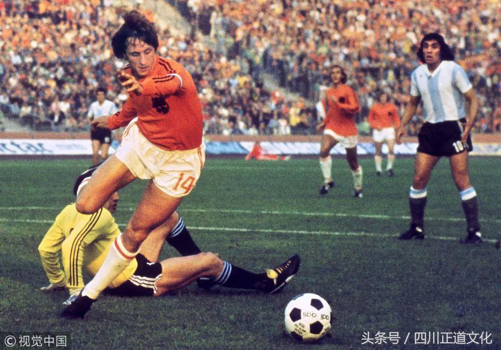 1974年6月26日,德国盖尔森基兴,世界杯1/4决赛,荷兰Vs阿根廷。克鲁伊夫在比赛中带球晃过阿根廷门将丹尼尔·卡尔内瓦利后破门得分。克鲁伊夫被称为荷兰飞人,是荷兰足球的代表人物,但其职业生涯未能为祖国赢得任何大赛冠军,是其终生遗憾。北京时间2016年3月24日晚,克鲁伊夫因癌症去世,享年68岁。